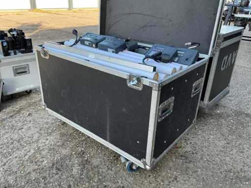 Voorzien van 8 controllers, bevestigingsmateriaal en een flightcase van 66x108x78cm.
