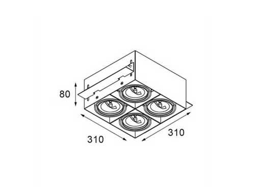 Ledsc4 Quad grid in trimless armatuur, randloze design inbouw spots, geschikt voor kantoor, winkel, showroom, ontvangstruimten, ook in woonkamer, de keuken, in slaapkamers, inloopkasten. Kardanisch kantelbaar en in hoogte verstelbaar, dimbaar, geschikt voor led en halogeen lampen van het type AR111. Merk: ledsc4, Type: DM-0084-14-00, Afmeting ca.: 30.4 x 30.4 x 8 cm. Max aantal lichtbronnen: 4. Kardanisch verstelbaar: Ja. Dimbaar: Ja. Inclusief inbouwframe: Ja. Kleur: Wit
