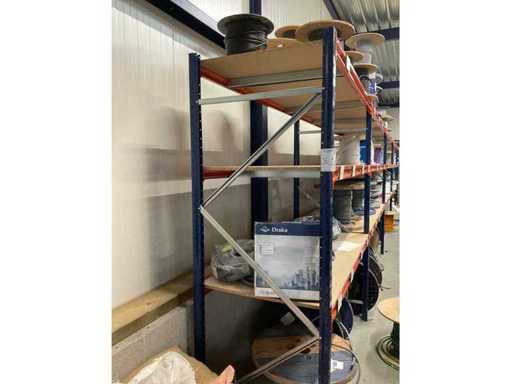 Staanders 80x225 cm; liggers 185 cm; dragers en legborden; Door koper zelf ter plaatse te demonteren; zonder de inhoud; afhalen op afspraak