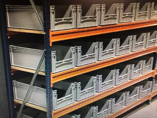 Legbordstellingen incl 60 grijze magazijnbakken.
