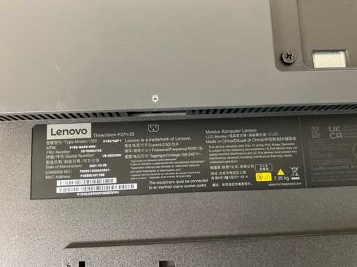 Lenovo (P27h-20) 27”, 2560x1440 (QHD) IPS Monitor