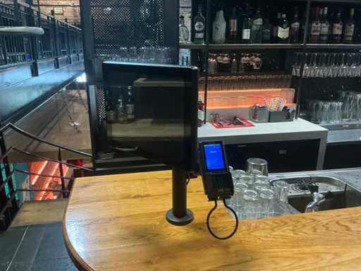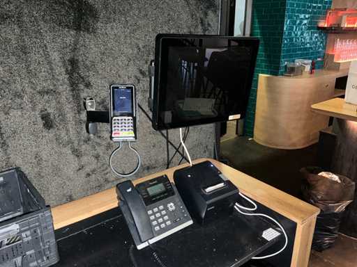 Touchscreenscherm 5x, bonnenprinter 4x, kassalade 2x, en pinapparaat 3x.