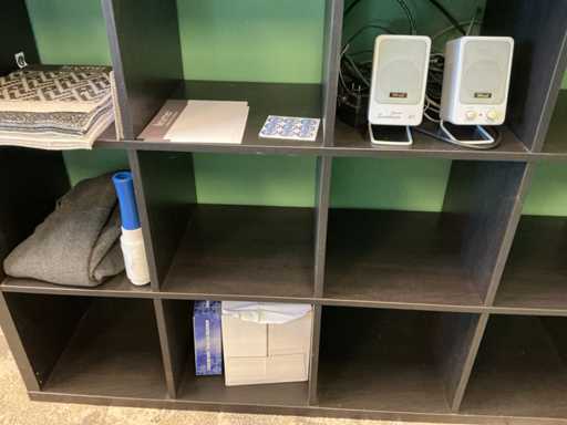 Inclusief 3x Bureaustoel en 1x Ikea 16 vaks kast met inhoud 147x39x147cm