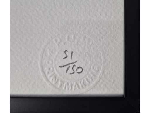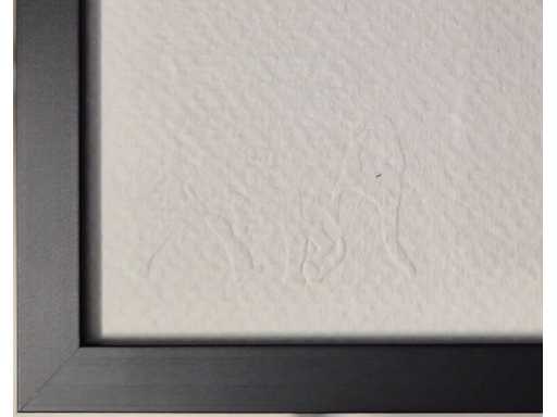 Genummerd en gesigneerd POW stempel / olifant stempel, Compleet ingelijst.