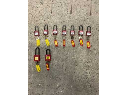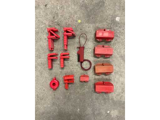 Gebruikt in de arbeidsveiligheid om onbedoelde heractivering van machines te voorkomen. Typisch onderdeel van lockout/tagout-programma's volgens OSHA- of EU-veiligheidsrichtlijnen. Gedeeltelijk gebruikt, deels originele doos Totaal gewicht inclusief verpakking ca. 10 kg
