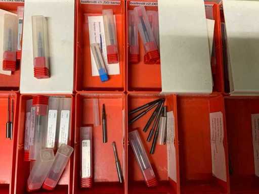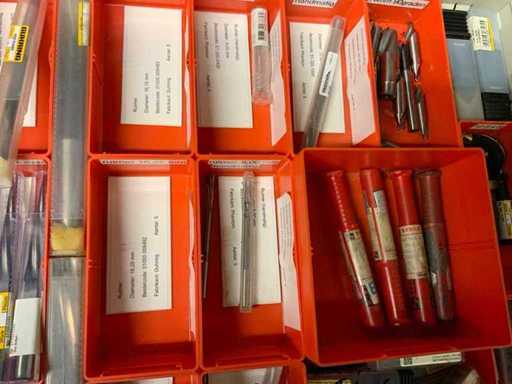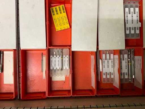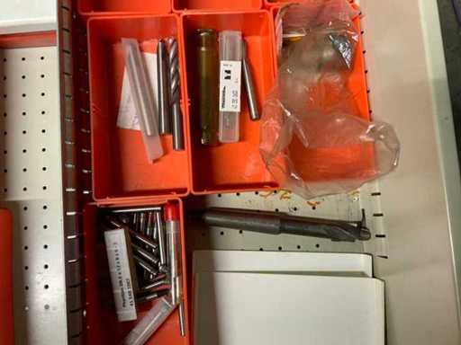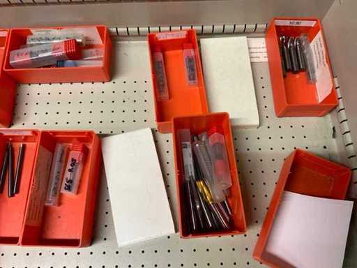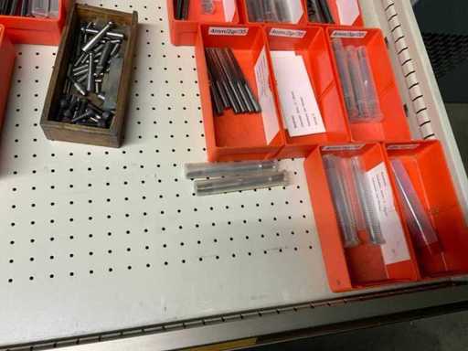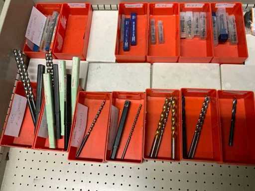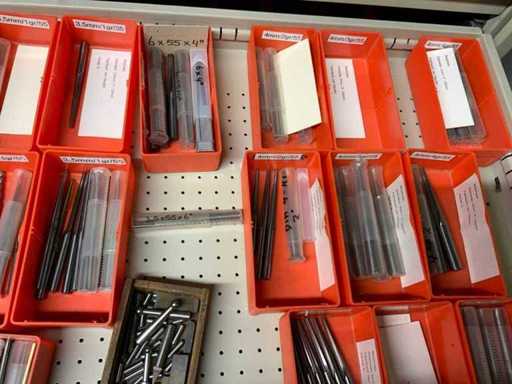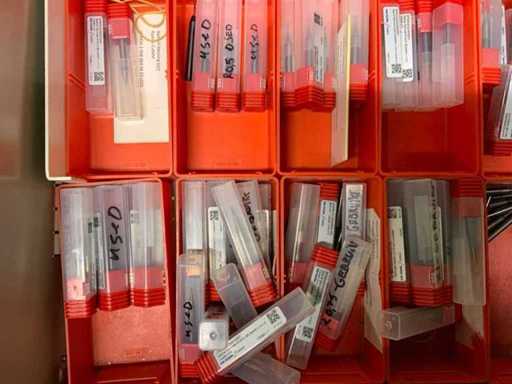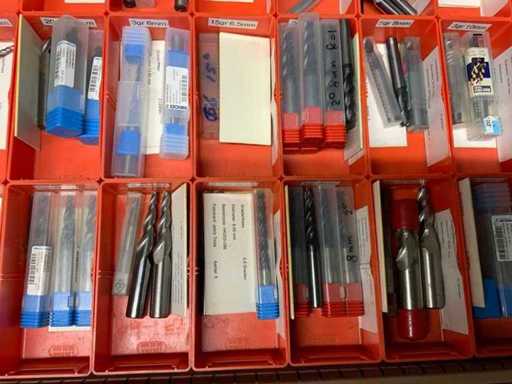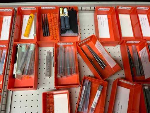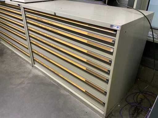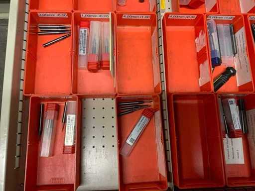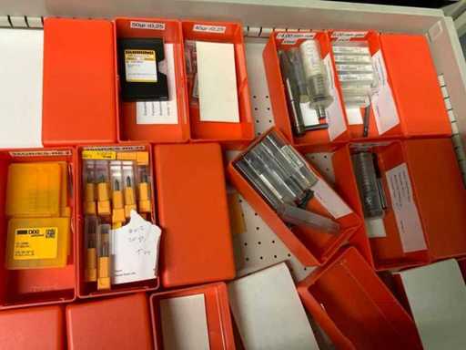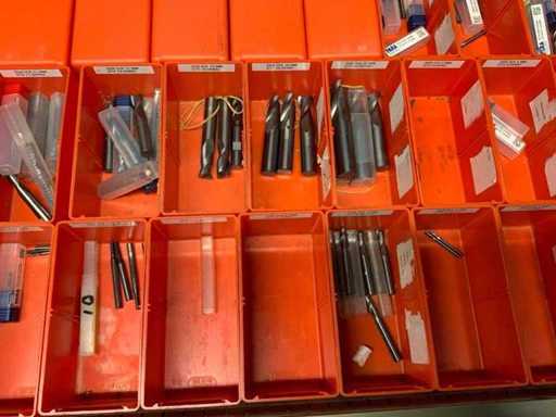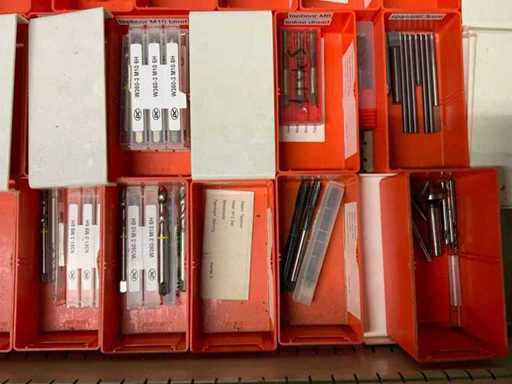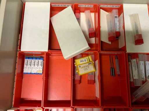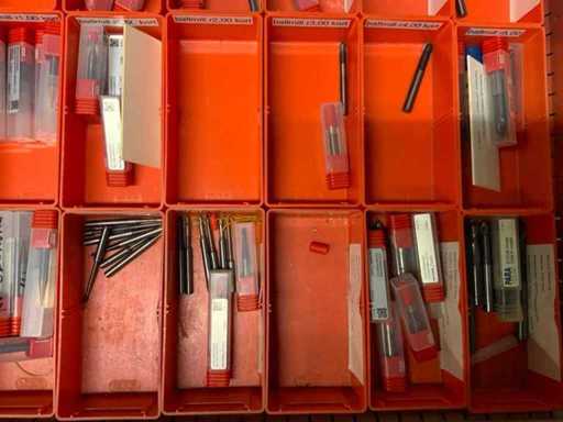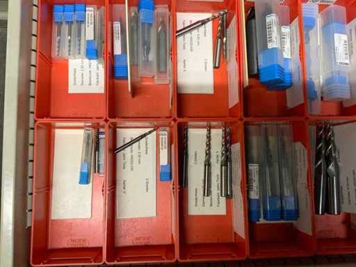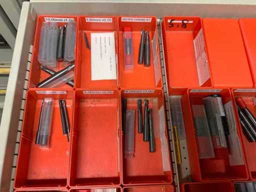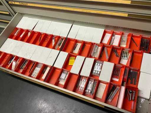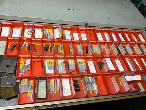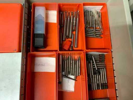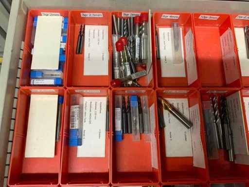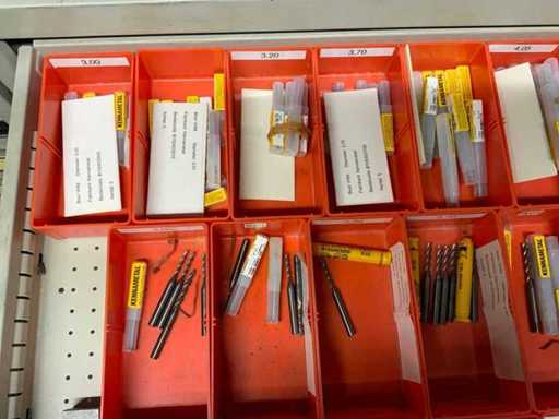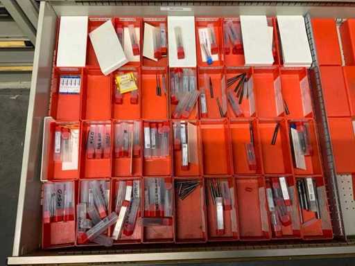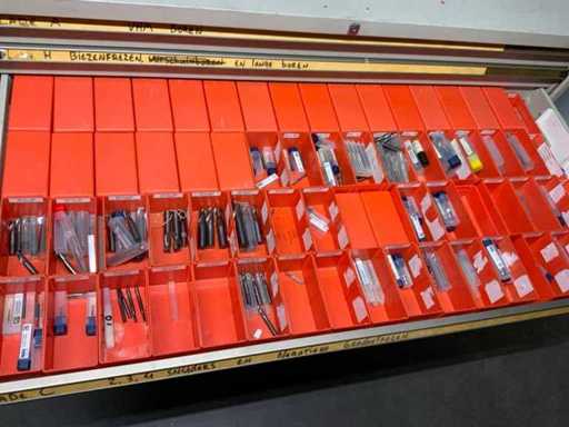 Ladekast voorzien van 8 laden met inhoud bestaande uit diverse boren, frezen,