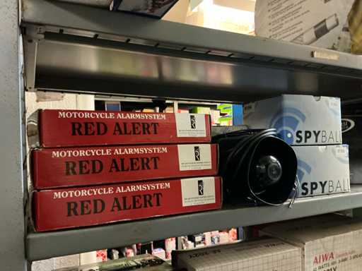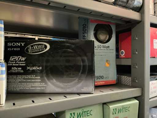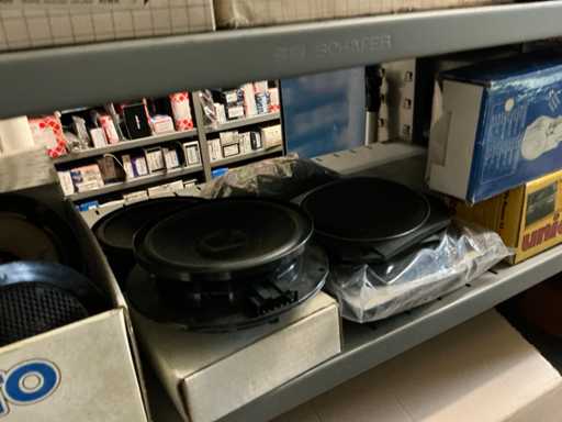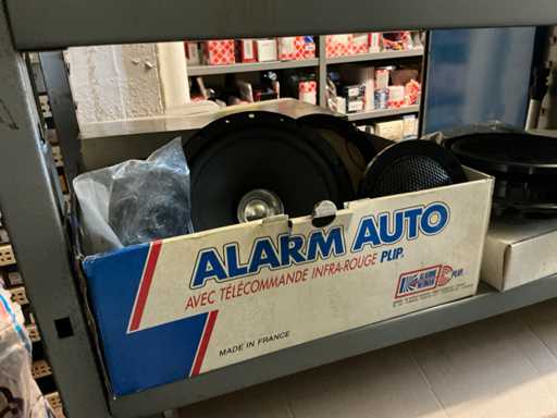 Bestaande uit luidsprekers, auto- en motoalarmen, antennes, aansluitfiches en 2 occasie autoradio’s.