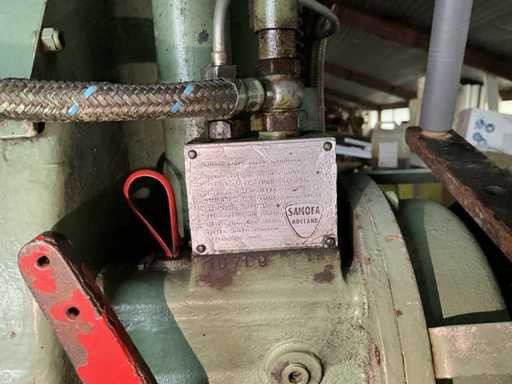 Luchtcompressor met stationaire samofa dieselmotor.