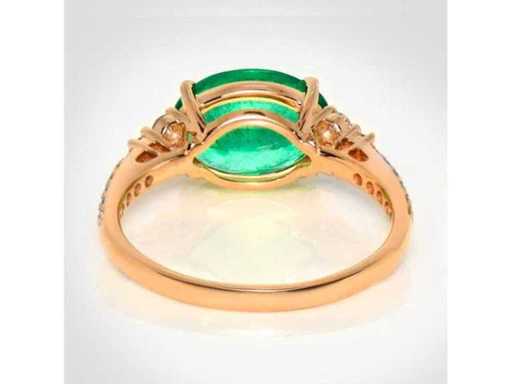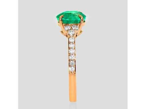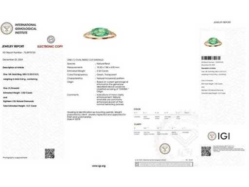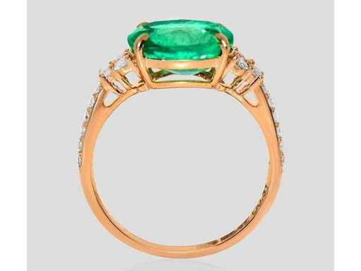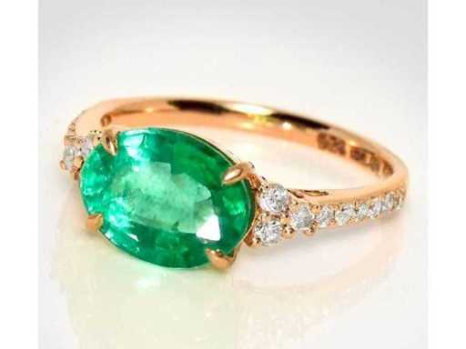 Luxe ring in Natural Zambia Green Emerald 2,83 karaat in 14k roze goud, totaal gewicht 2,44 gr. Centrale steen is een natuurlijke Zambia groene smaragd in ovale vorm van 2,52 karaat met 18 ronde briljante diamanten F-G / VS-SI van 0,31 karaat. Gecertificeerd door IGI Labaratoire, een van 's werelds grootste onafhankelijke certificerings- en evaluatieinstituten voor edelstenen. Meer informatie zie het certificaat. De sieraden zijn in werkelijkheid beter dan de foto's. Winkelprijs: € 11.650.-