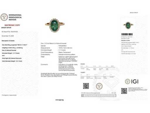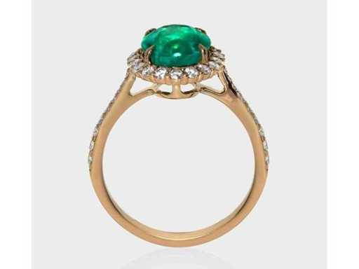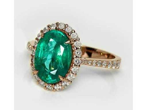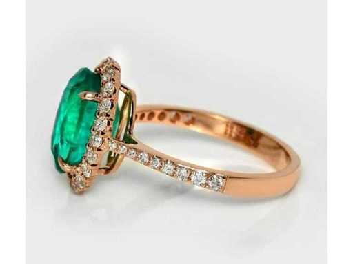 Luxe ring in Natural Zambia Green Emerald 3,62 karaat in 14k roze goud, totaal gewicht 3,06 gr. Centrale steen: een natuurlijke Zambia groene smaragd in ovaal geslepen 3,11 karaat met 38 ronde briljante diamanten F-G/VS-SI van 0,51 karaat. Gecertificeerd door IGI Labaratoire, een van 's werelds grootste onafhankelijke certificerings- en evaluatieinstituten voor edelstenen. Meer informatie zie het certificaat. De sieraden zijn in werkelijkheid beter dan de foto's. Winkelprijs: € 12.850.-