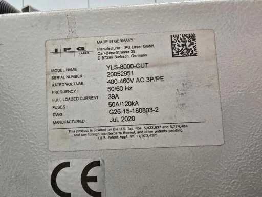 complete fiber laser snijmachine inclusief Donaldson Torit DCE afzuiging en seperate koeler; voorzien van 8kw IPG fiber laser bron; snijuren 14-10-2025: 7562 uur; machine wordt professioneel gedemonteerd en verladen op uw transport (bijkomende kosten staan apart vermeld tijdens het bieden)