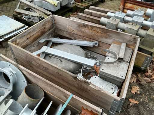 divers op 16 pallet plaatsen, onderdelen, frame delen, jukken en of pallets inbegrepen