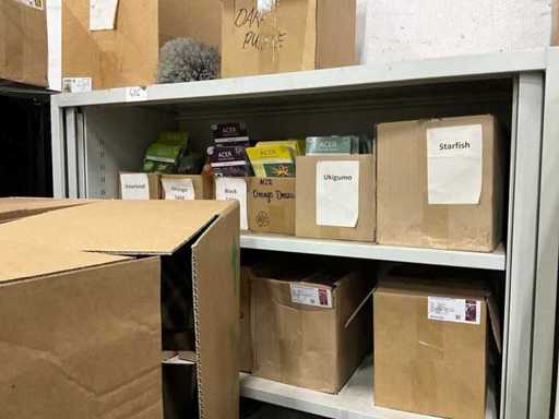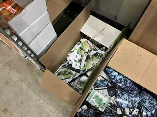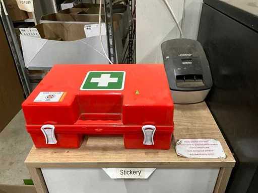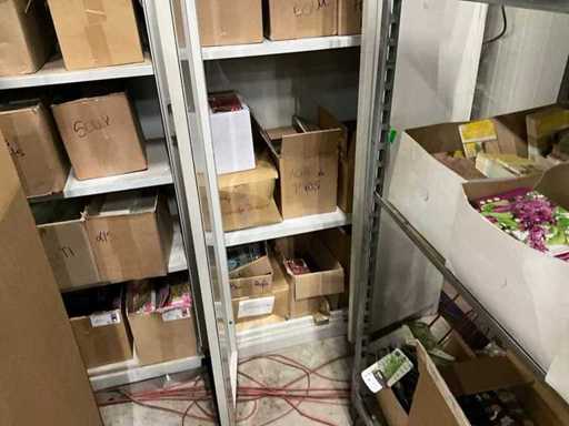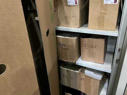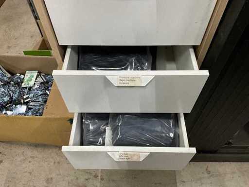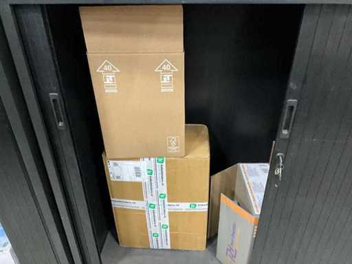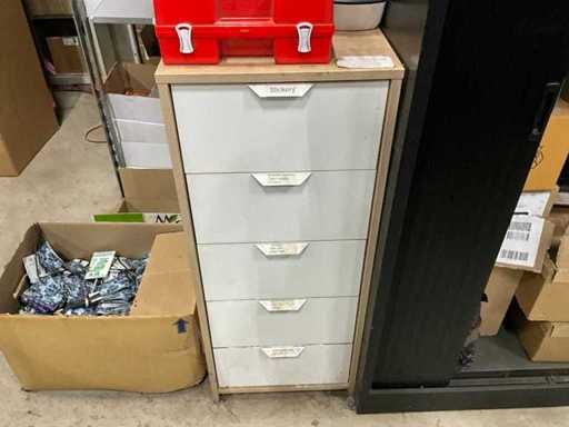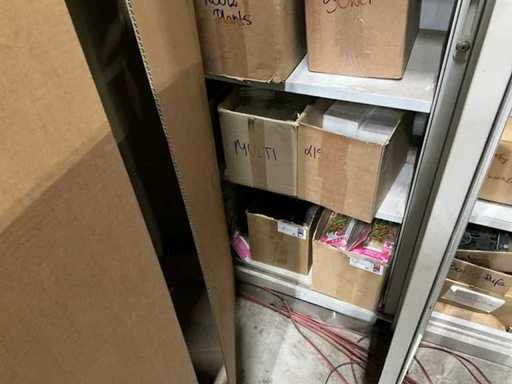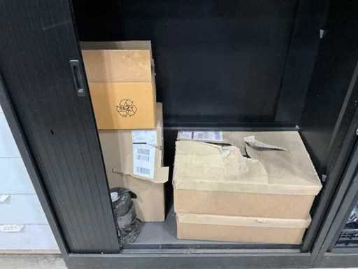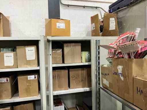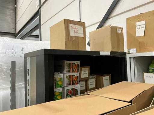 Bestaande uit diverse roldeurkasten met inhoud, ladekast met tiewraps, tweedeurskasten met inhoud, plantenlabels, bubbelfolie, Brother QL-700 label printer, etc