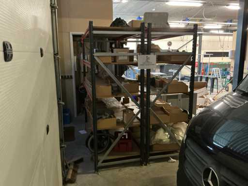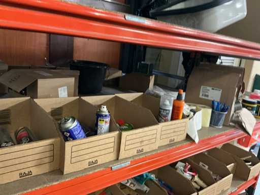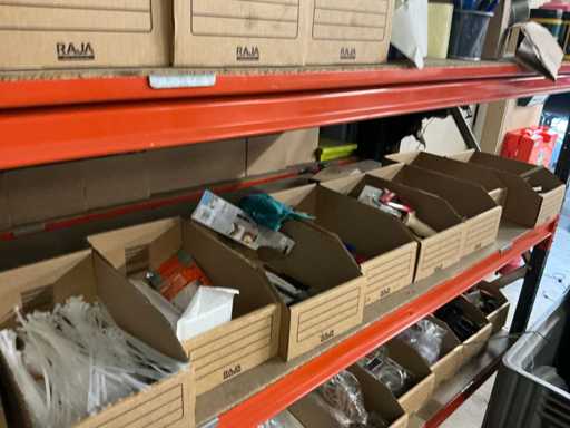 Met inhoud bestaande uit kartonnen bakjes met magazijnbenodigdheden.