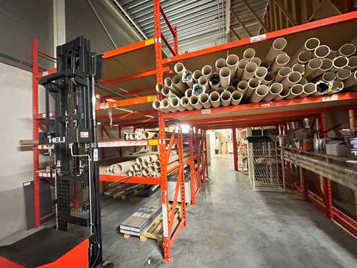Deze stelling bestaat uit 13 staanders van 90x300 cm (BxH) en 24 liggers van 290 cm. Inclusief legborden. Exclusief inhoud.
