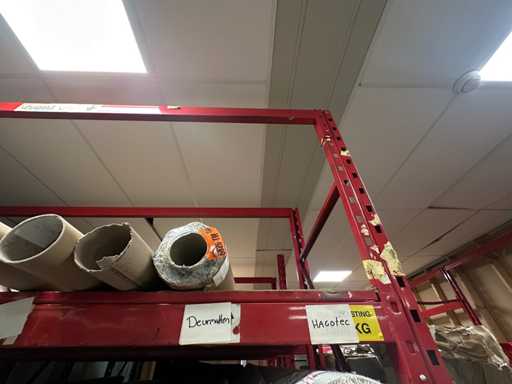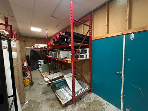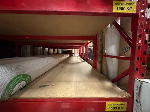 Exclusief inhoud. De stelling bestaat uit 9 staanders van 90x300 cm (BxH), 27 liggers van 240 cm. Diverse legborden.