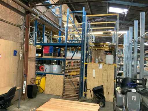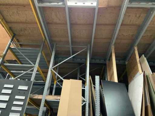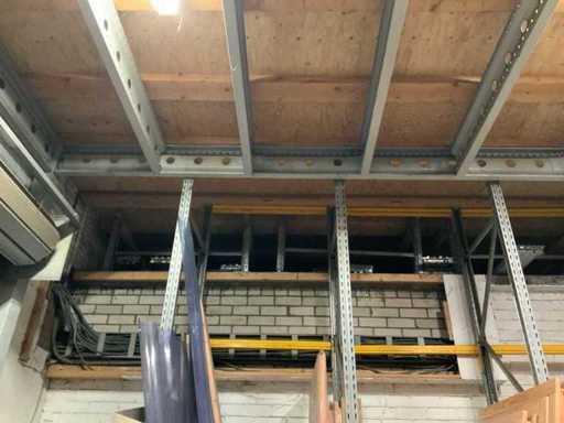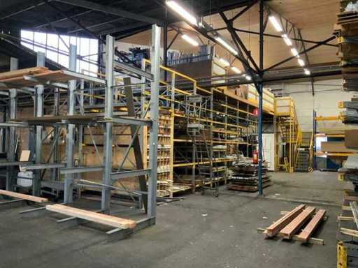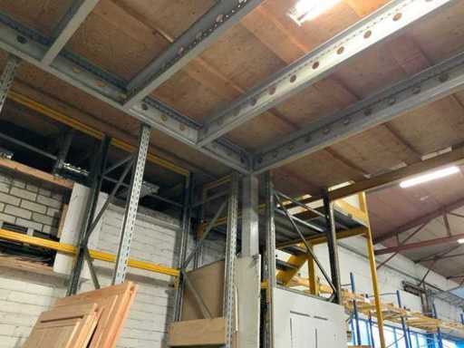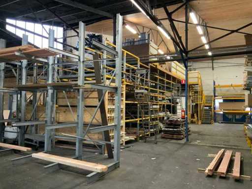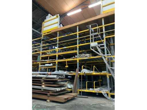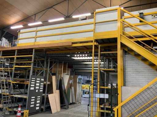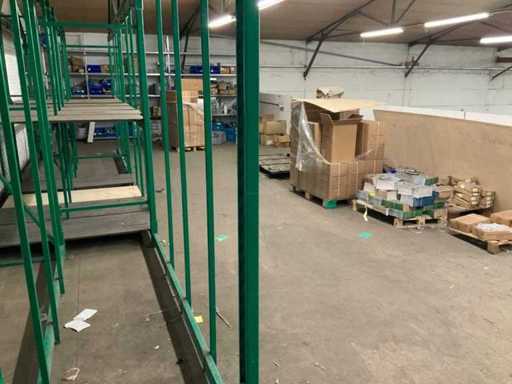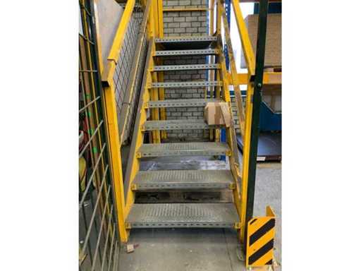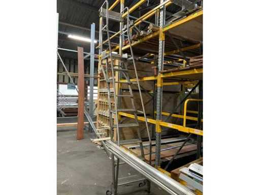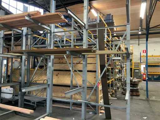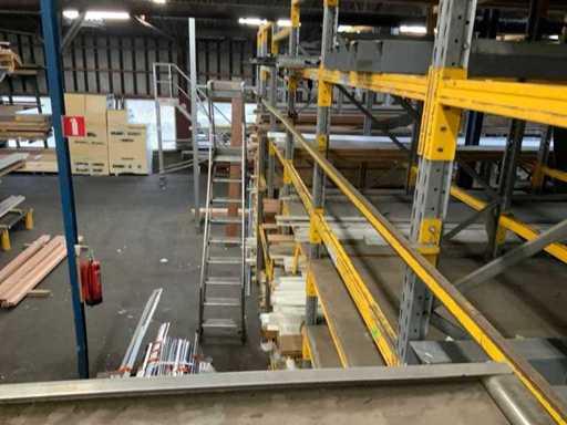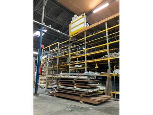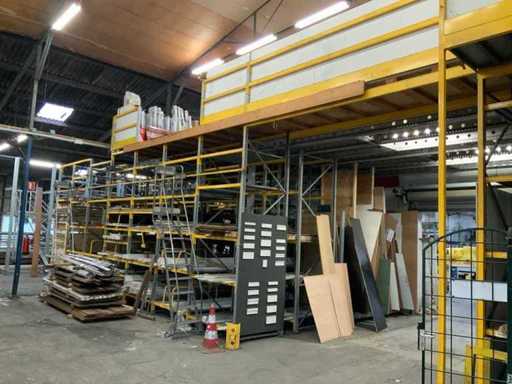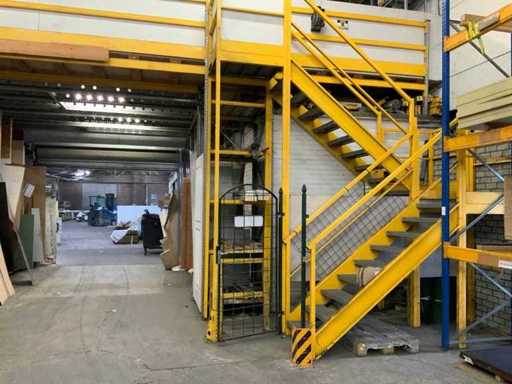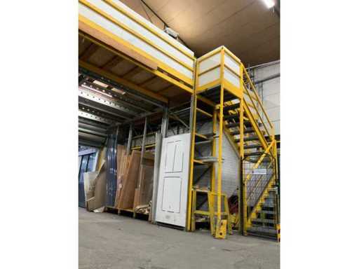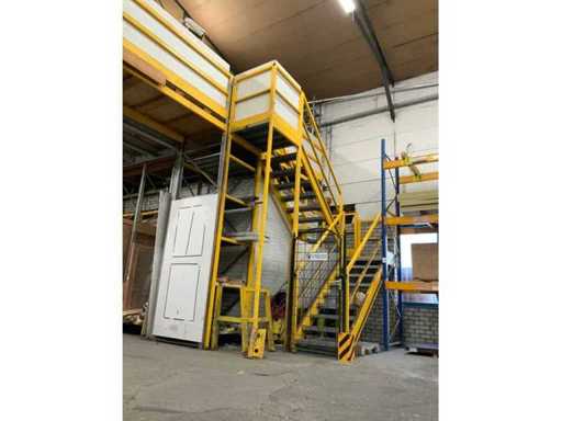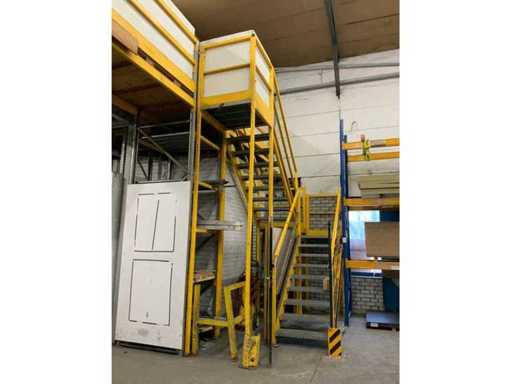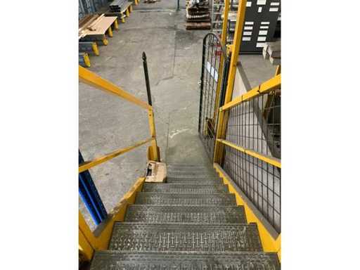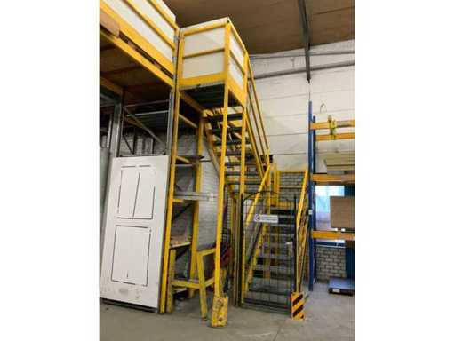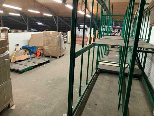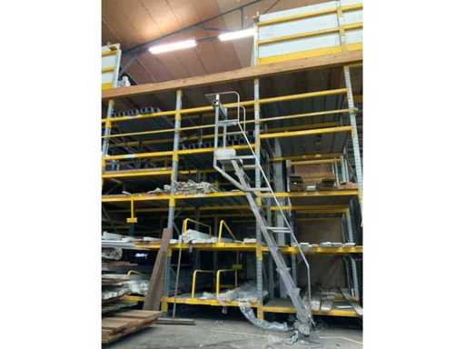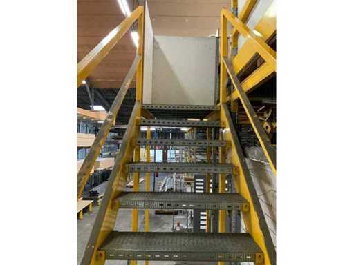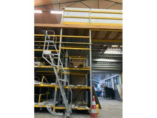 Magazijnstelling met entresolvloer, trappen en doorgang