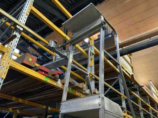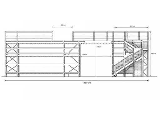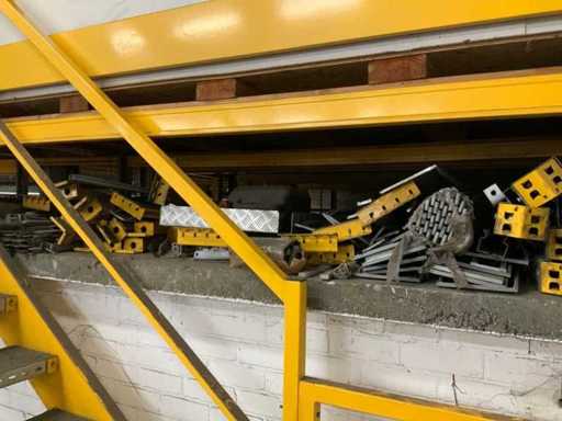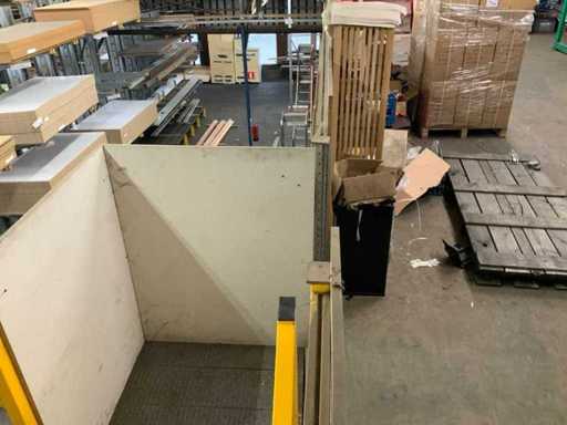 Afmeting entresol ca. 1400x590 cm, hoogte trap ca. 500 cm, doorgang breedte trap ca. 102 cm, laadplek op entresol ca. 290 cm; tekening ter indicatie, kunnen geen rechten aan worden ontleend. Dient door de koper gedemonteerd te worden op locatie.