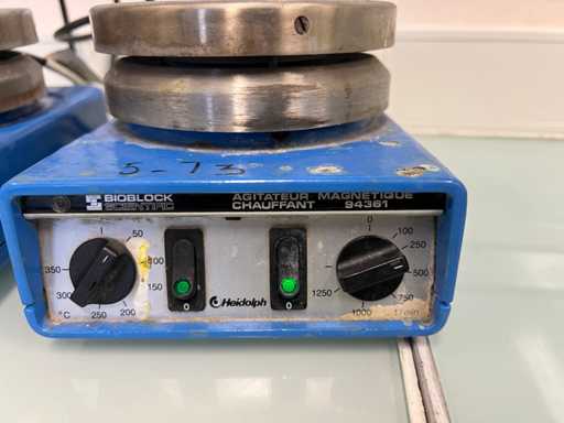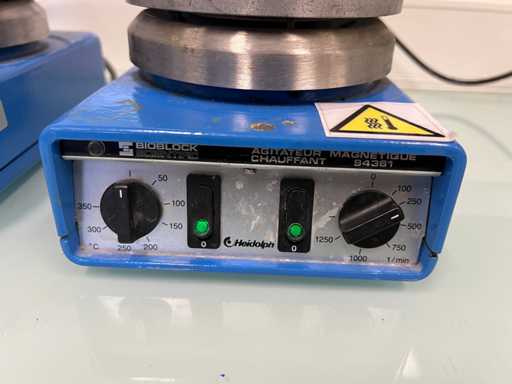 - 4x Bioblock Scientific 94361 verwarmde magnetische roeraars (maximaal 1250 tpm, maximaal 350°C