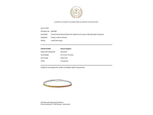 Magnifieke Luxe Natuurlijke Multi Color Saffier Armband 8,72 karaat in 18 karaat witgoud 11,65 gram, met 53 hoogwaardige natuurlijke Multi Color Saffieren 8,72 karaat in ovale vormen. Voor meer informatie, zie certificaat. Het juweel zelf is mooier dan de foto's. Geschatte prijs van de winkel: € 13.950.-