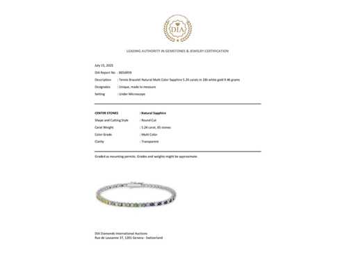 Magnifieke Luxe Natuurlijke Multi Color Saffier Armband 5,24 karaat in 18 karaat witgoud 9,46 gram, met 65 hoogwaardige natuurlijke Multi Color Saffieren 5,24 karaat in ovale vormen. Voor meer informatie, zie certificaat. Het juweel zelf is mooier dan de foto's. Geschatte prijs van de winkel: € 7.950.- Nieuw juweel.