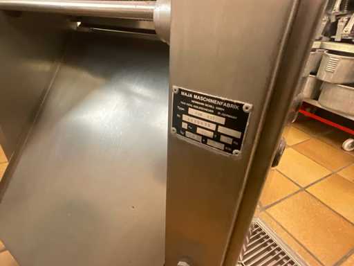 Professionele vleespel-/pelmachine MAJA EVM 437, geproduceerd in Duitsland door MAJA Maschinenfabrik Hermann Schill GmbH.