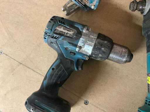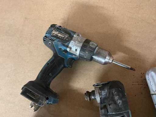 Waaronder 2x schroefboormachine DHP481, haakse boormachine DDA 351, haakse slijper DTM51, ZONDER batterijen of lader