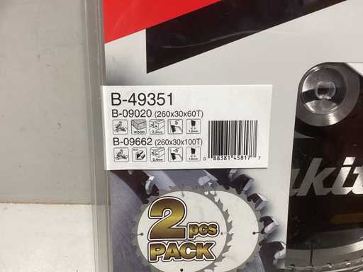 Makita zaagbladen 2 stuks (260x30x60T / 260x30x100T