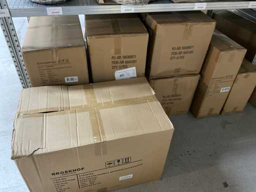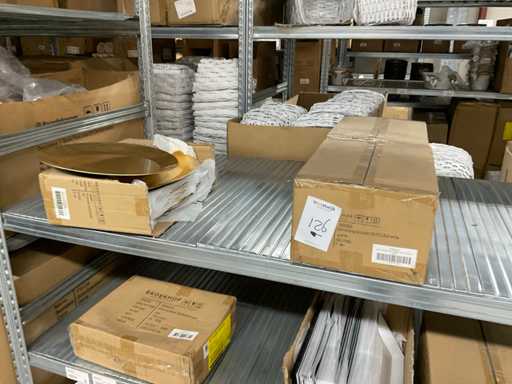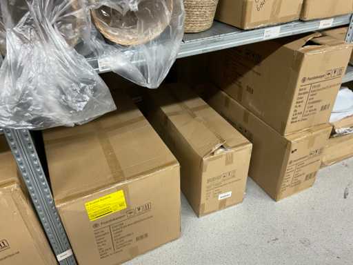 Let op kavels liggen op 1ste verdieping, enkel met trap bereikbaar, goederen met lift max 400 kilo of per pallet met vorkheftruck naar beneden te halen.