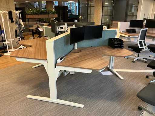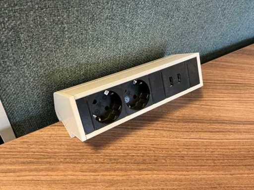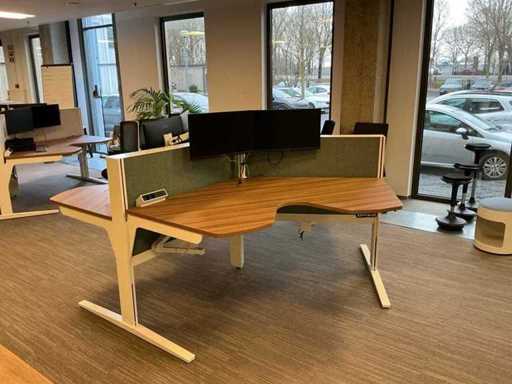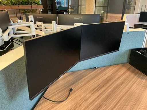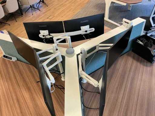 Voorzien van stroom en usb aansluiting, 3 monitorarmen en 6 Huawei beeldschermen.