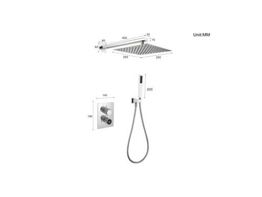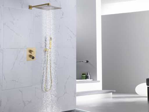 materiaal messing en 304 rvs, mengkraan, binnenwerk keramisch, douchekop 25x25cm, handdouche verstelbaar met doucheslang en ophanging van messing, douchekop met kunststof wateruitlopen, douchekop kantel en draaibaar, voorzien van digitale micromotor aansturing door middel van waterflow, geen stroom nodig, temperatuur digitaal afleesbaar, digitale aanduiding tijdsduur, anti kalk behandeld, messing muurplaat, met inbouwbox voor makkelijke installatie, dit betreft een nieuwe product in verpakking
