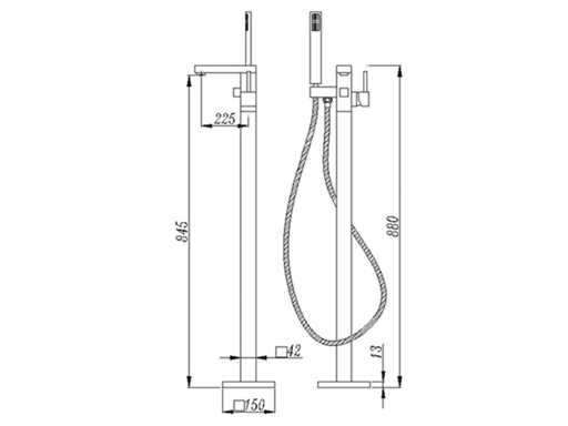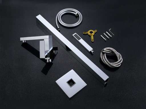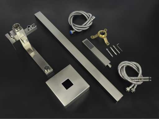materiaal messing, keuze kleuren: chroom of geborsteld rvs (kleurkeuze aangeven op de afhaaldag of per email op info@mawialux.nl), Binnenwerk keramisch, Hoogte 88 cm, Handdouche ja met flexibele doucheslang en verstelbare ophanging, Voorzien van mengkraan, hendel voor schakeling tussen Handdouche of badkraanuitloop, vloerplaat, waterleidingen, aansluitmateriaal, LET OP: dit artikel kan gratis bezorgd worden binnen de Benelux(neem hiervoor contact met ons op via info@mawialux.nl)