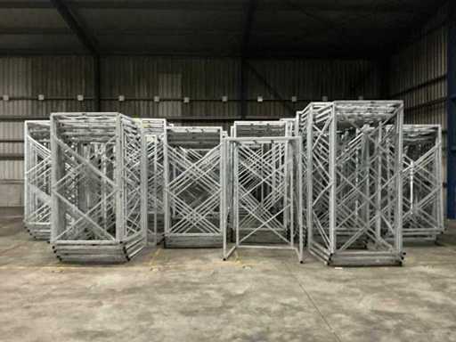 Gegalvaniseerd stalen frame, Maximale last 2500kg, Open zijde 127cm breed, Achter zijde 108cm breed, Hoogte 220cm, Vrije ruimte 108cm, Nestbaar tot 10 frames, Frames voorzien van serienummer