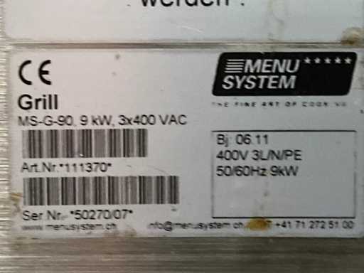 voorzien van jus opvangbak; opstaande spatwand achter;