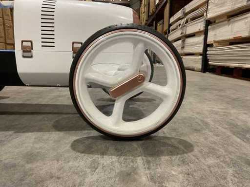 Voorzien van Elektrische motor; 12V voltage; radio; voetpedaal; Afstandsbediening; Rubbere banden; Maximaal belastbaar gewicht: 50kg; Transport gewicht: 21.5; Transport afmetingen: 103x61x44 cm; Ongebruikt in doos