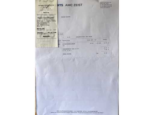 Na het overhandigen van de vrijwaring of een kopie daarvan kan de auto worden meegenomen. Tijdens de ophaaldag is er geen vorkheftruck beschikbaar. Wanneer je de kavel in ontvangst neemt vragen wij je te tekenen voor een goed ontvangst. Daarmee geef je aan dat je de kavel juist en compleet hebt ontvangen. Controleer bij ontvangst dan ook altijd je kavel.