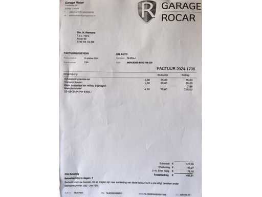 Betaal eenvoudig met iDeal via uw Troostwijk Account. Het is niet mogelijk om contant of per PIN te betalen. Nadat u de auto gewonnen heeft en de betalingsorder /PO# order klaar staat in uw account onder 'mijn aankopen', dient u deze online te betalen via de Troostwijk-Auctions website of Troostwijk-Auctions app. Let op dat al uw accountgegevens goed staan die op de factuur moeten komen, wij kunnen dit niet achteraf aanpassen.