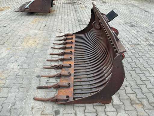 Voorzien van: 10 tanden, mestriek, hijshaak, aansluiting Alhman As150, aansluiting tussen de oren 1850mm, hart op hart maat 740mm.