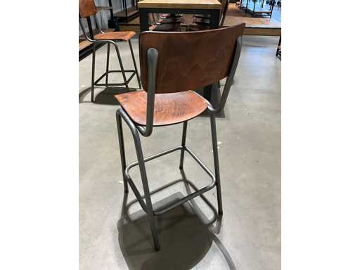 Compleet met 16x metalen barstoel voorzien van houten zitting en rug, zithoogte: 67cm