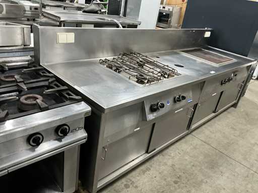 voorzien van 4-pits gaskookplaat en elektrische bakplaat.; 17 kw.