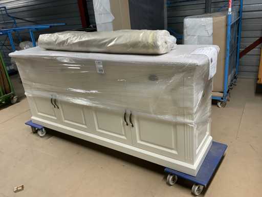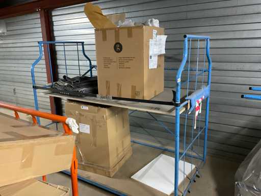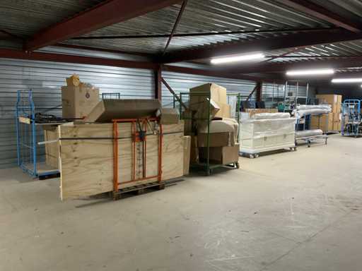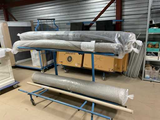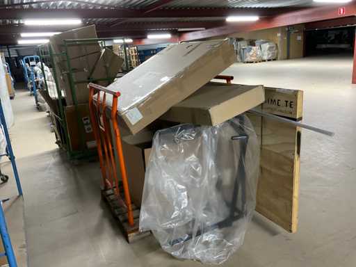 Bestaande uit onder andere: tapijt, tafels, tafelbladen, bankstellen, stoellen, kast. Inclusief meubeltransportwagens.
