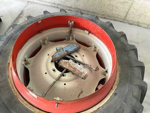 Volgens foto's gewicht ca. 250 Past op velgen van 34 inch. bijvoorbeeld 480/70 R34. Michelin, bandenprofiel is 90%