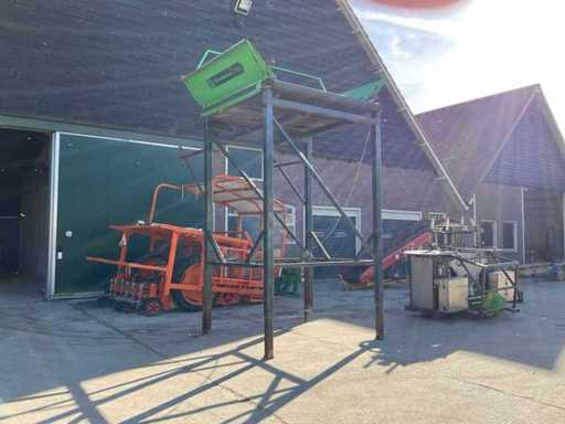volautomaat; kist afm. ca. 2000x1100 mm; v.v. schakelkast; incl. uittrekband en stalen onderstel