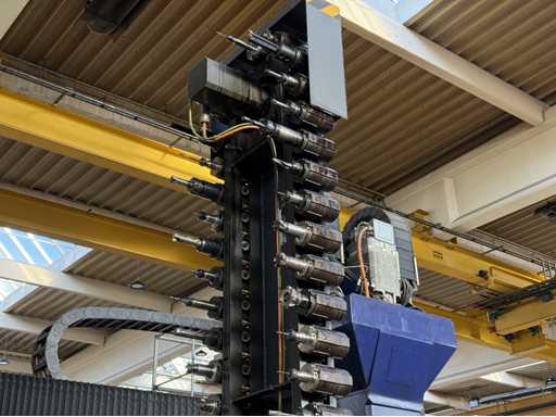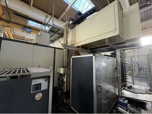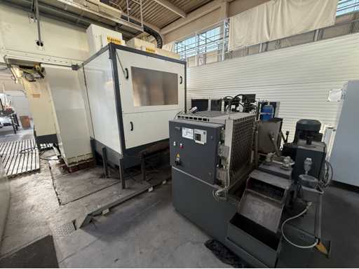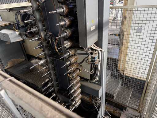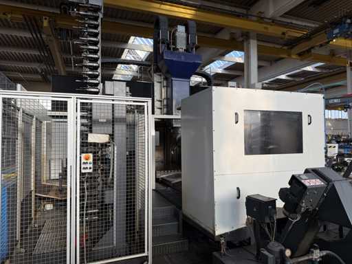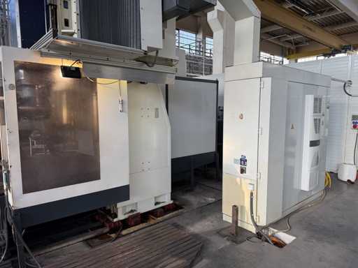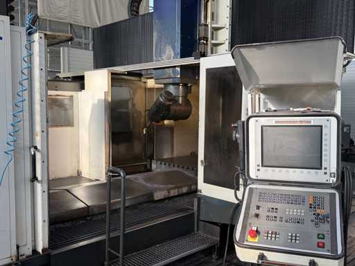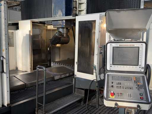 4 gestuurde assen: X, Y en Z en een draaikop B-as, Slag X: ca. 2700 mm, Slag Y: ca. 2200 mm, Slag Z: 300 tot 1350 mm, Portaaldoorgang: ca. 1400 mm breed, Hoogte: ca. 1350 mm, Spilvermogen: 37 kW, Maximaal vermogen: tot 48 kW, Maximaal koppel tot 1310 Nm, Snelheidsbereik: ca. 4200 tpm, Besturing: Heidenhain, Type: TNC 430M, inclusief riemfiltersysteem, Magazijn met gereedschap, zie foto's voor meer details