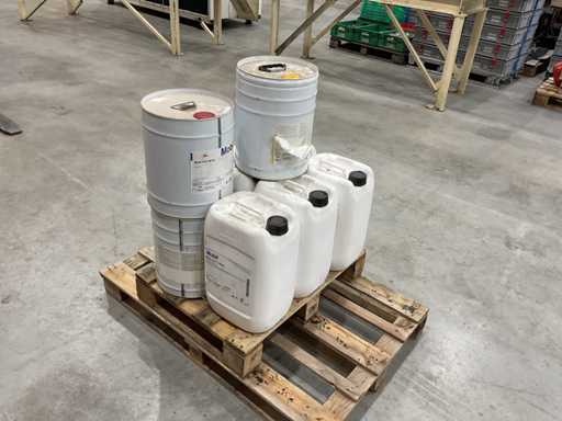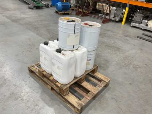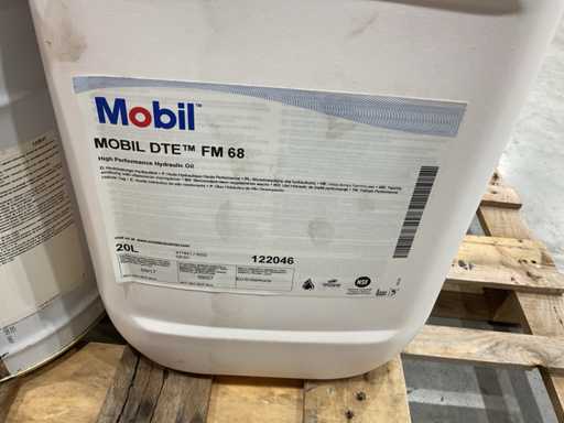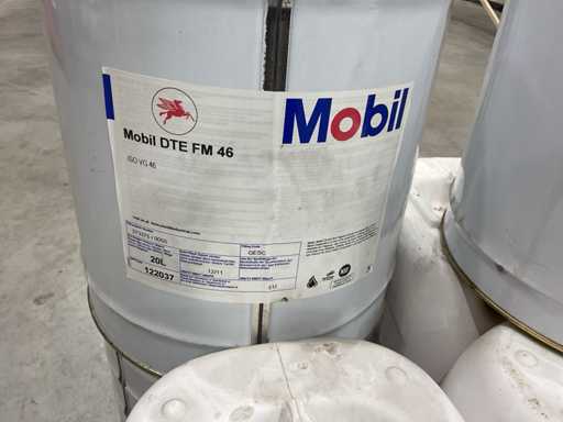 3x mobil DTE FM 46 totaal 60 liter; 5x mobil DTE FM 68 totaal 100 liter.