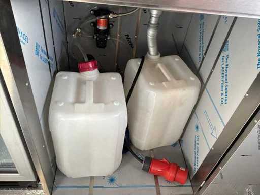 Ongebruikt. Voorzien van: vriezer, koelkast, wasbak, ledverlichting, afvoerput, opbergkast, 2 x uitgiftelocatie.