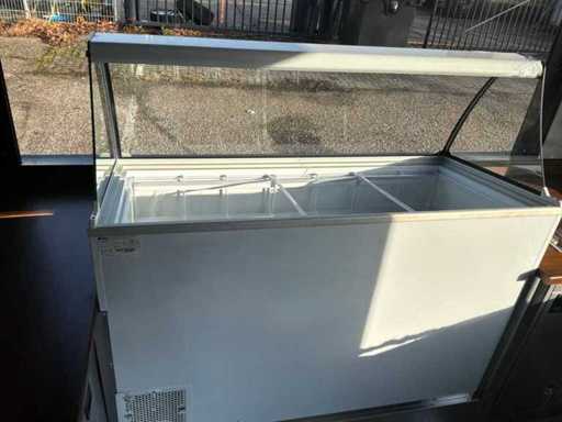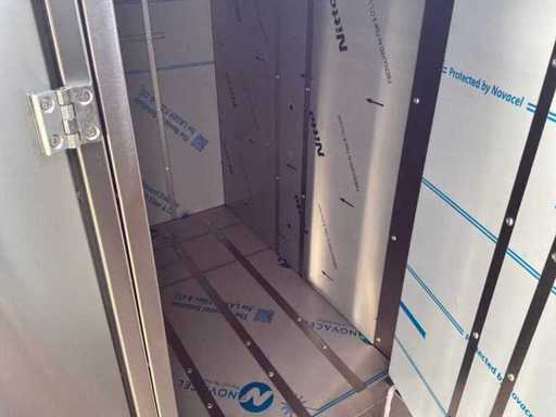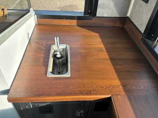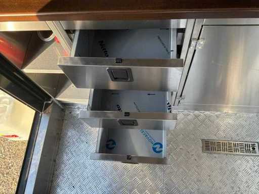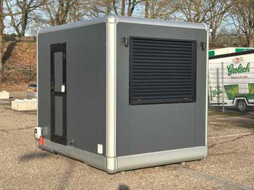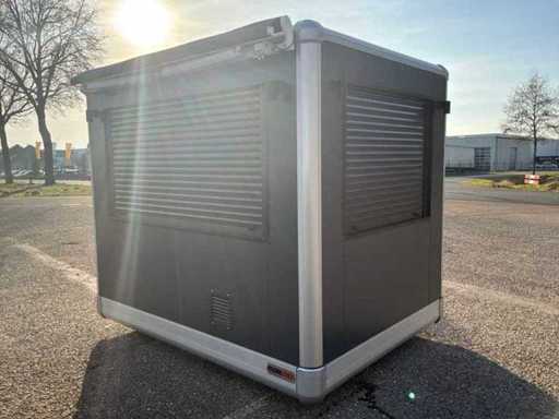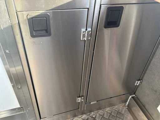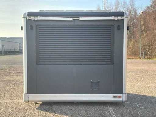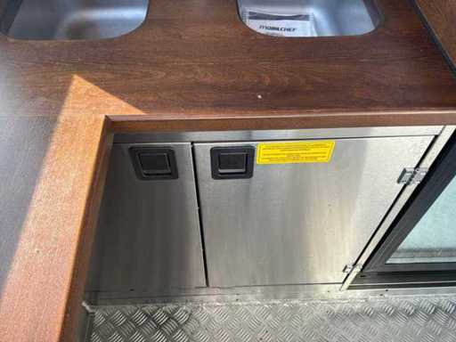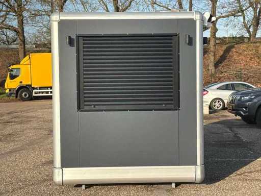 Ongebruikt. Voorzien van: vriezer, koelkast, wasbak, binnen en buiten ledverlichting, 3 uitgiftelocaties afsluitbaar met rolluiken(afstandbediend), afvoerput, traanplatenvloer, 1 x ladekast, 2 x opbergkast. Wateraansluiting, stroomaansluiting 400V. Betreft een demomodel.