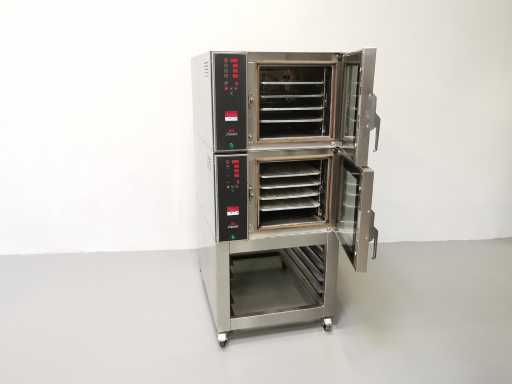 Dubbele stapel op verrijdbare trolley, voorzien van bakplaten, grote capaciteit, 3 FASE