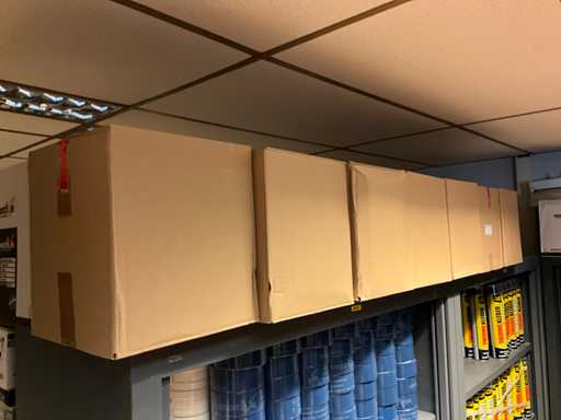 Waaronder afplak en aluminiumtape. Liggende in rolluikkast (niet inbegrepen) en circa 45 omdozen.