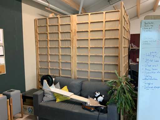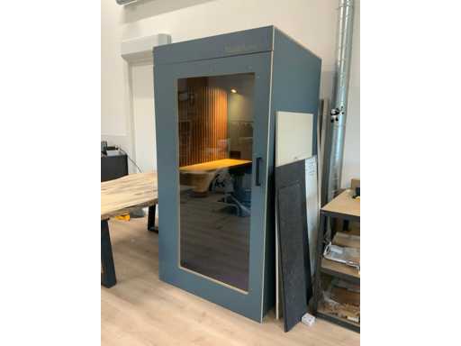 Voorzien van stroom punten, verlichting en ventilatie * inclusief scheidingswand bestaande uit 3 panelen van 1220x2440mm * inclusief geluidsarme wand van 1510x2100mm